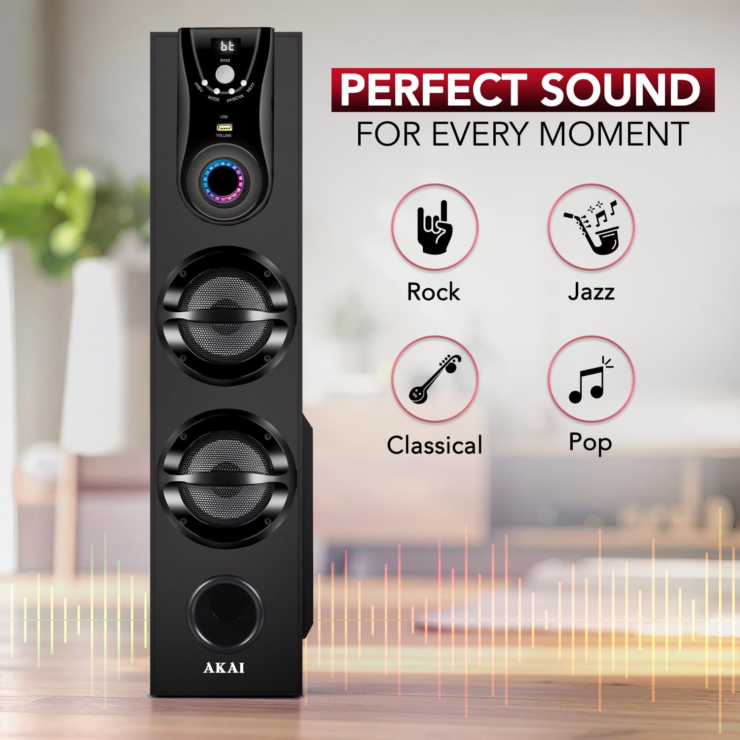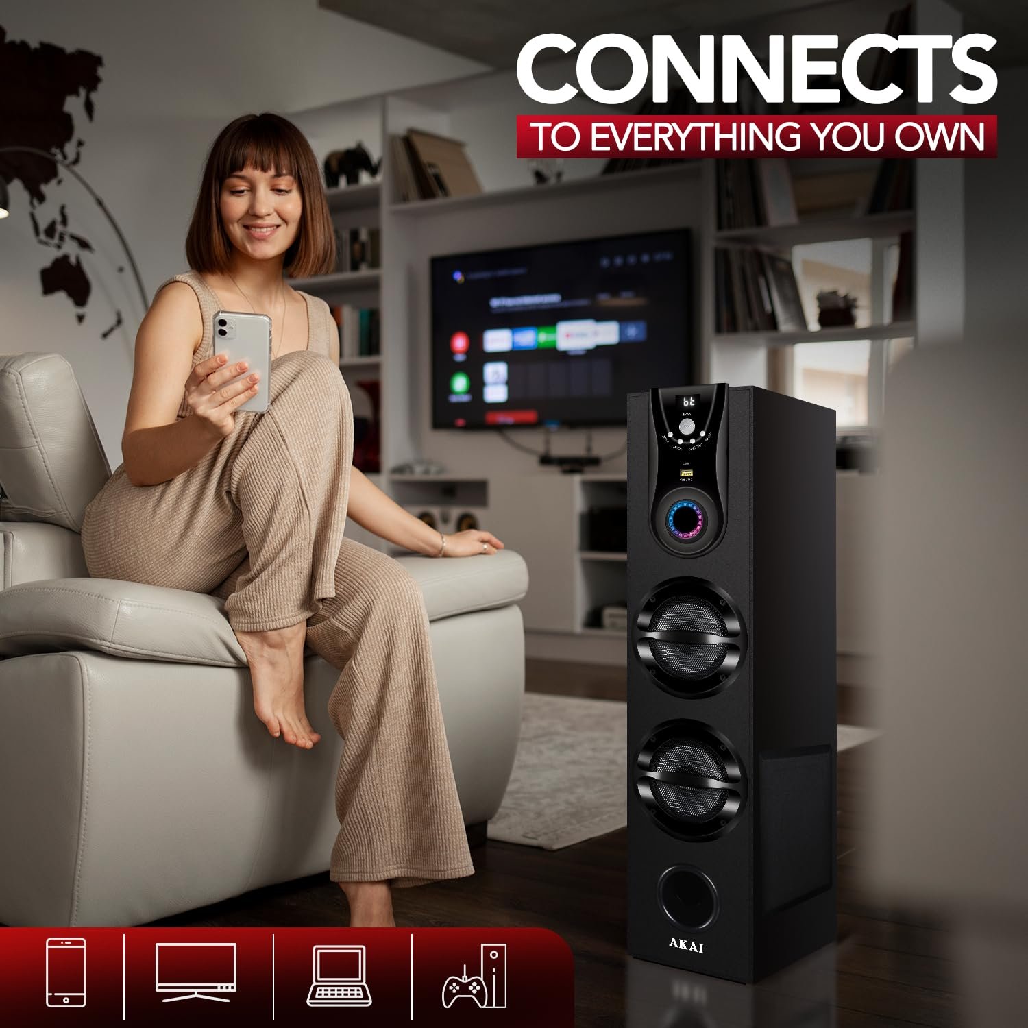 • POWERFUL 50 Watt AUDIO OUTPUT WITH BASS FUNCTION – Equipped with a 5.25″ woofer and dual 4″x2 speakers that deliver loud, clear, and deep bass sound, making music, movies, and gaming more immersive.