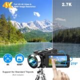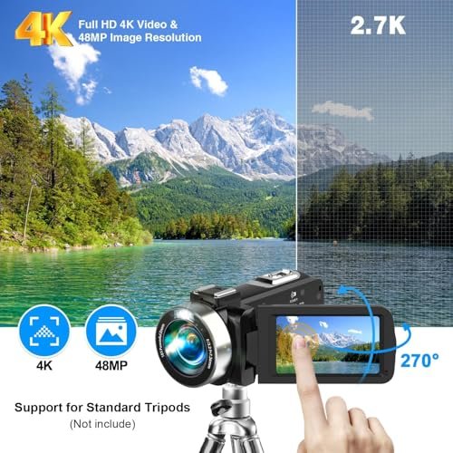 - 🎥【4K Ultra HD Video Camera】This 30FPS camcorder produces video at 4K UHD resolution and 48MP photos. It has a 3.5 inch/270-degree rotating screen and 18x digital zoom. It also offers 1080P/60FPS frame rate options, providing a smoother and lag-free recording experience.This vlog camera is the perfect companion when exploring this beautiful world!