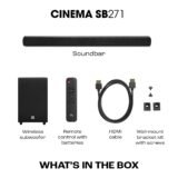 • 220W SOUNDBAR WITH WIRELESS SUBWOOFER: JBL Cinema SB271 delivers a massive 220 Watt of powerful sound from two full range drivers. The wireless subwoofer delivers deep and thumping bass and a clutter-free experience