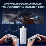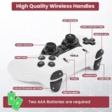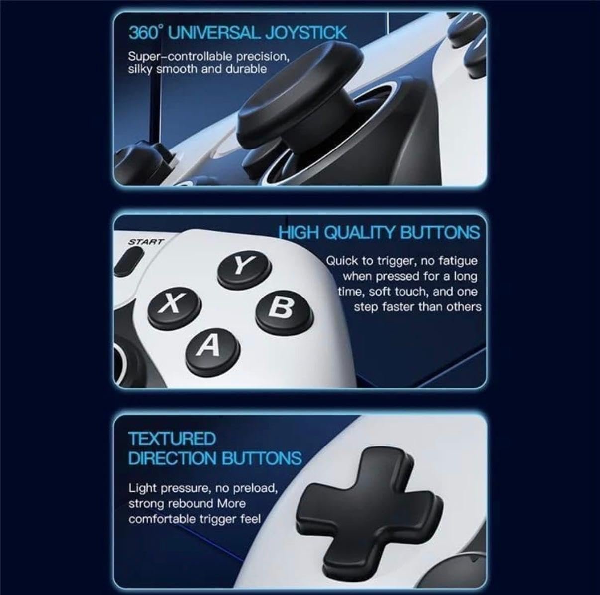 - Dual Wireless Controllers Included Comes with two ergonomic Bluetooth controllers featuring 360° universal joysticks, fast-trigger buttons, and textured D-pad — enjoy multiplayer retro games without lag or cables.
