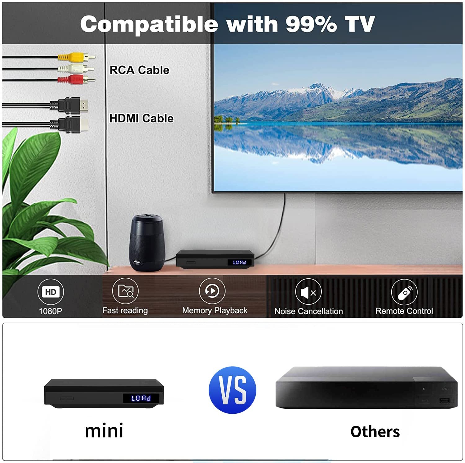 - [USB PLAYBACK FUNCTIONALITY FOR ENHANCED CONVENIENCE]: The DVD player for TV can directly play your favourite movies, music, or videos from a USB storage device. This versatile and user-friendly feature is particularly suited for users who prefer digital media over physical discs.