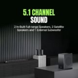 • ✅5.1 Channel: The Superbars Nova Home Audio System includes a soundbar with 3 in-built full-range speakers, 2 full-range satellite speakers and 1 external subwoofers for utmost aural clarity. These speakers for home make for a great audio experience. Enjoy the clean highs, great mid and crisp lows. Bring home your personal home theatre 5.1 channel with bluetooth & bass.