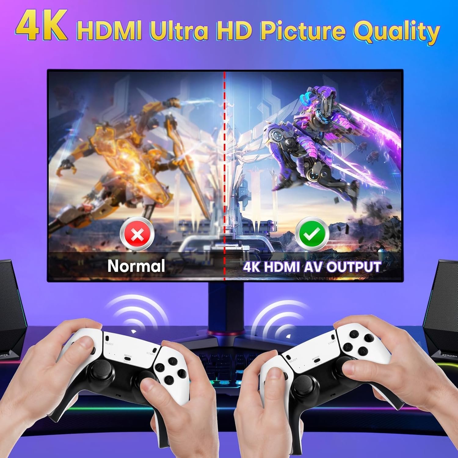 - 【HDMI Output and HD Display】Our retro game console boasts anti-interference technology, ensuring uninterrupted gameplay. The sensitive controls give you precision movements for a more immersive experience. And with support for 1080P display, you’ll be able to see every detail of the game like never before. This HDMI game stick adopts HDMI connect, which is more stable and smooth, suitable for devices with HDMI sockets, perfect to restore the picture of classic video game consoles.