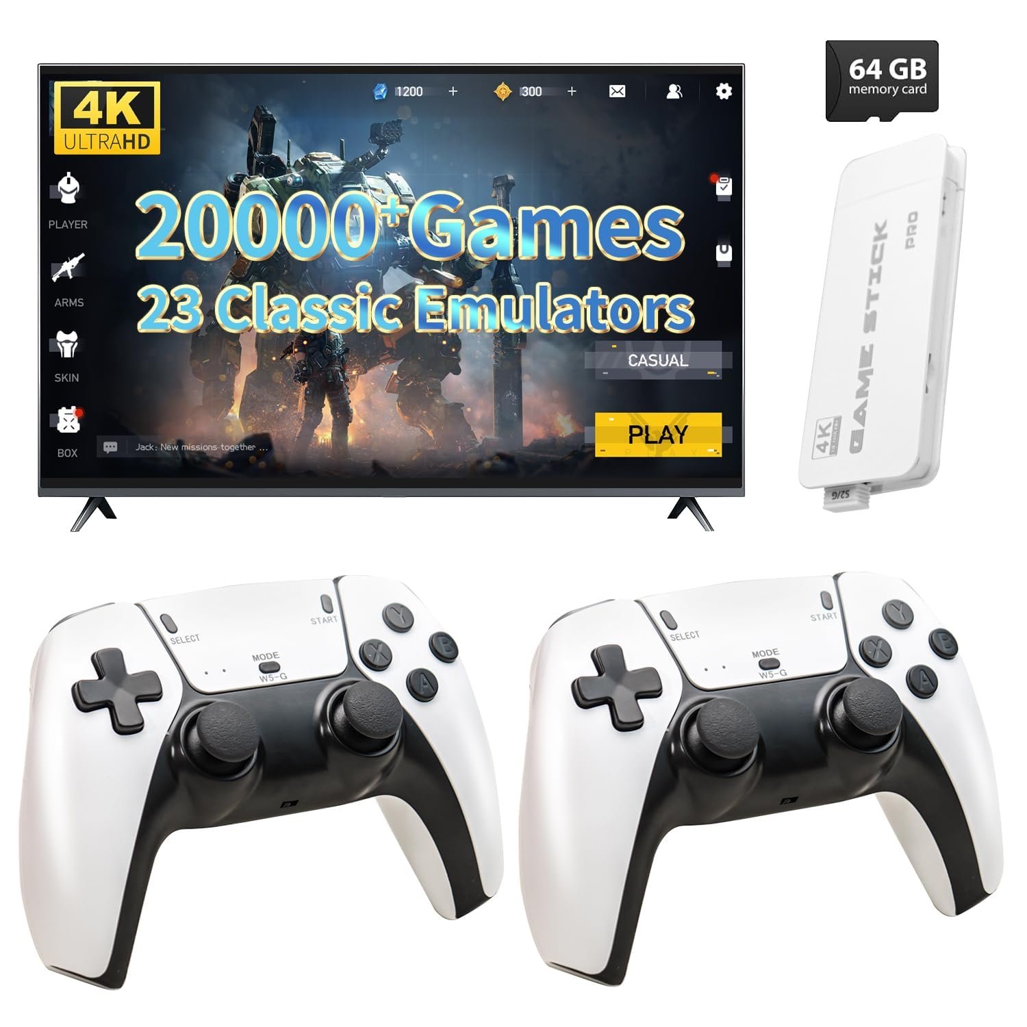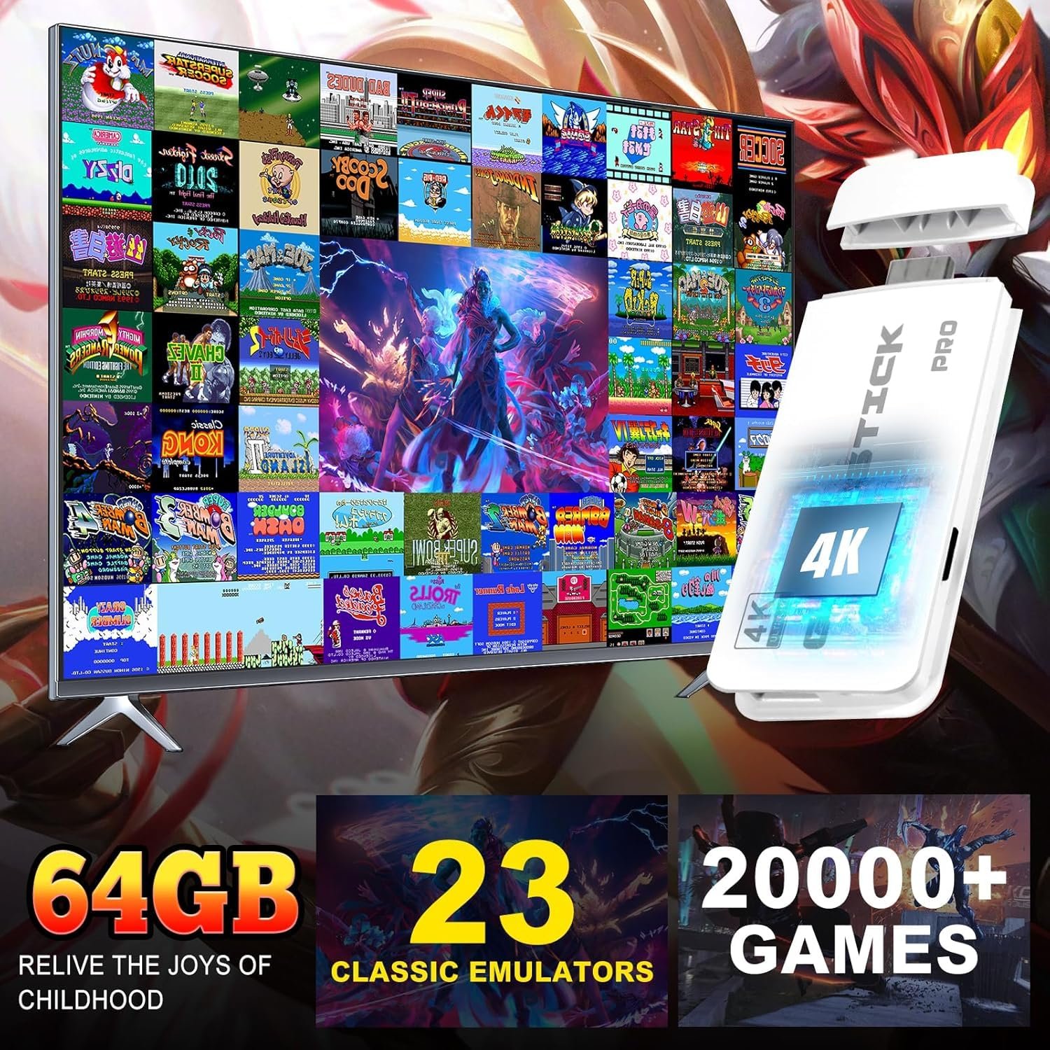 - 【20000+ Retro Gaming Experience】If you want a smart and cool gamepad, then it’s definitely for you! First of all, this game stick adapts to more than 20,000 games, comes with 23 emulators, comes with a 64G TF card, and can play more than 20,000 classic games simply by connecting a TV or display. Secondly, its resolution is stable at 1080p, which can bring you a high-definition gaming experience. You can play non-repetitive games every day that instantly bring you back to childhood memories.