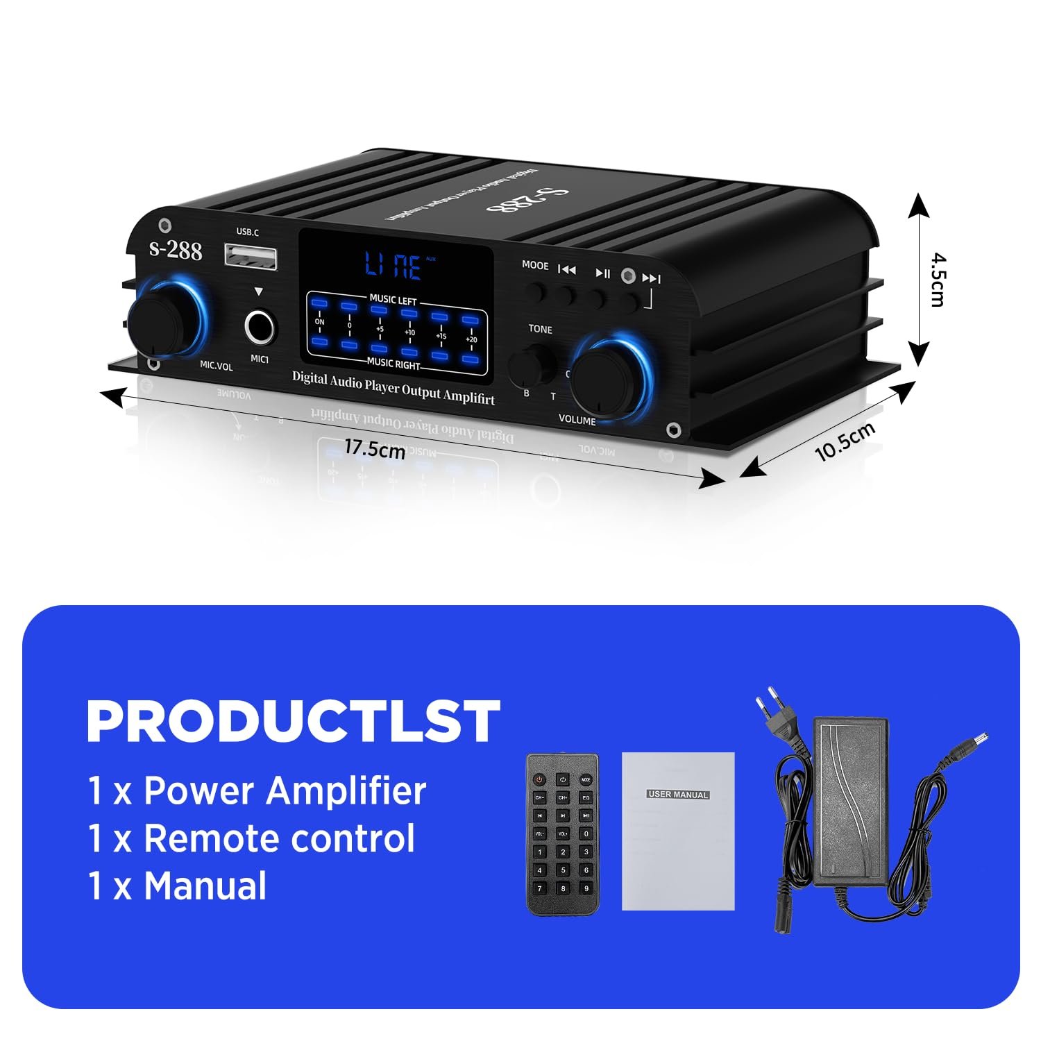 - POWERFUL COMPATIBILITY: Hi-Fi amplifier supports MP3, USB, Microphone, AUX playback with digital LCD display and music output dynamic level indicator.
