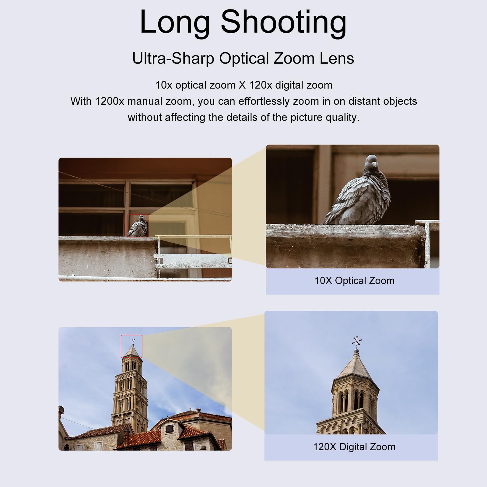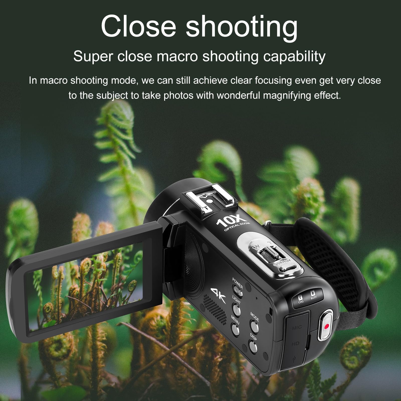 - 10X Optical Zoom:This 4k camcorder supports 10x optical zoom,12x digital zoom,and 120x intelligent zoom products,capturing distant scenery. This camcorder is ideal for situations where you need to capture distant objects while requiring high-quality images.