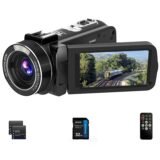 - Remote Control & Webcam Function: This HD video camcorder comes with a remote control, allowing you to operate it while it sits on a tripod. It’s useful for taking family pictures without leaving anyone out. Additionally, the camcorder can be used as a webcam. Simply connect it to your computer via USB, select PC Camera mode, and start video calls or live streams on Facebook, Youtube, or Instagram.