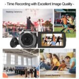 - Multi-functional Camcorder: This 4k camcorder video camera features a built-in microphone for clear audio capture, supports recording while charging, has LED lights, a pause function, time-lapse, face capture, webcam capability, USB and HDMI outputs, and is compatible with external microphones(Not included) for enhanced audio quality. It also includes a remote control and supports a maximum 256GB Memory card.