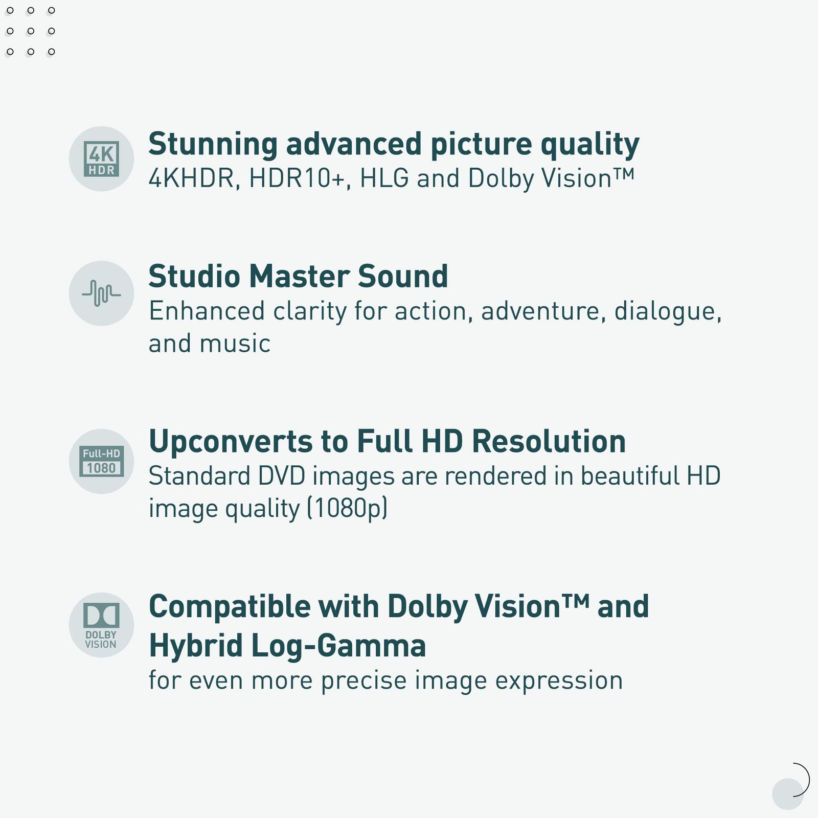 • Studio Master Sound with Enhanced Clarity: Designed for high-resolution audio as it was meant to be heard; connect to your audio system via twin HDMI for Hi-Res studio master sound