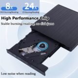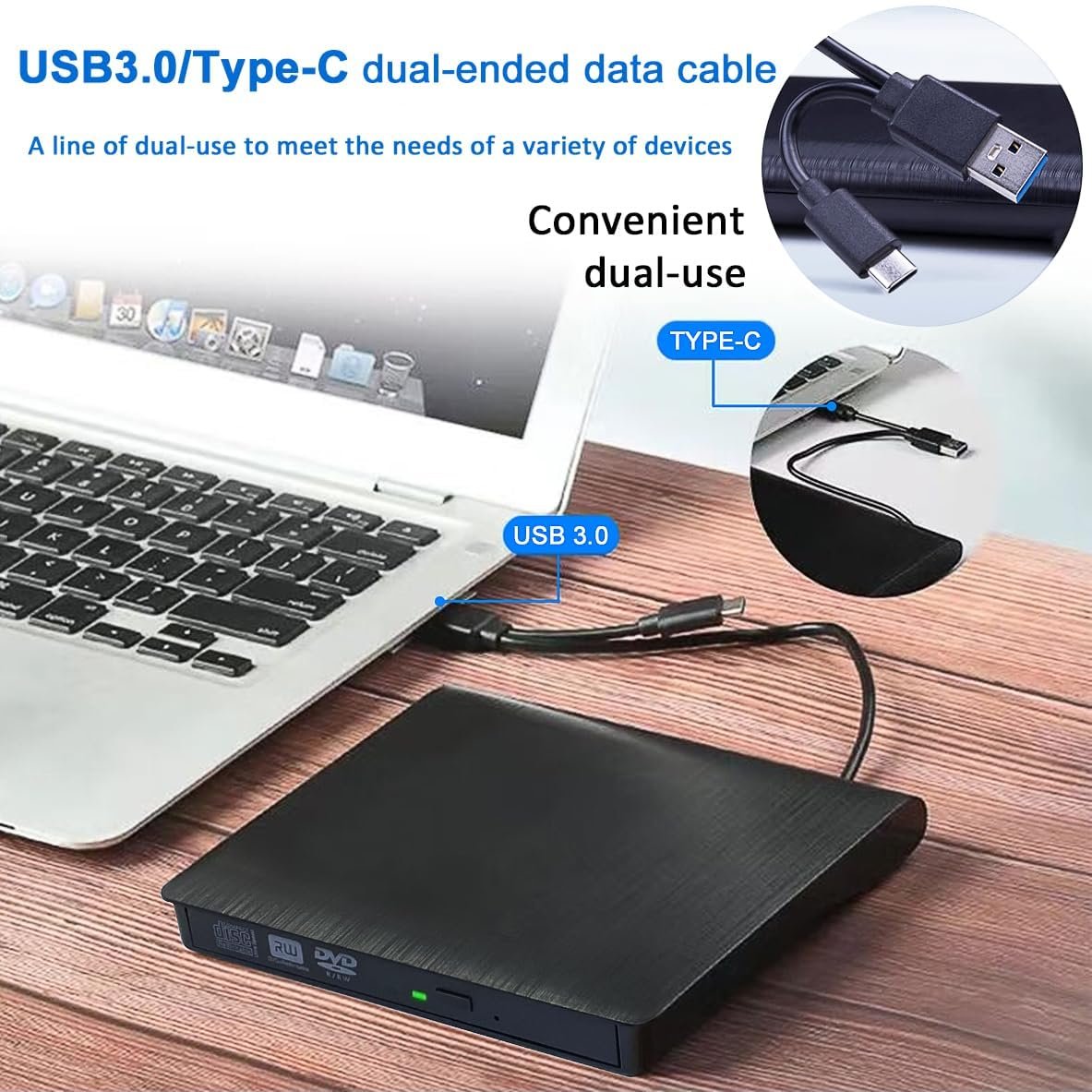 • 𝗨𝗦𝗕 𝟮.𝟬/𝟯.𝟬 + 𝗧𝘆𝗽𝗲-𝗖 𝗽𝗼𝗿𝘁 & 𝟴𝗫𝗗𝗩𝗗 + 𝟮𝟰𝗫𝗖𝗗: The dual USB and Type-C interface makes it easy to connect to a variety of devices and provides the convenience of quick plug and play. This amazingly fast external CD/DVD drive allows you to read and write DVDs up to 8x and CDs up to 24x Even if there is a large amount of data, it is ready to be processed. Whether it’s important business or leisure time, its efficiency and speed will exceed your expectations