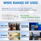 • 【𝐁𝐫𝐨𝐚𝐝 𝐌𝐞𝐝𝐢𝐚 𝐒𝐮𝐩𝐩𝐨𝐫𝐭】CD player supports CD/DVD-ROW, CD-R/RW, DVD+R/RW, DVD-R/RW disc formats (CD drivers also support M-DISC). The data write mode of this product requires professional software to download and is original writing software (non-original writing software may cause errors) When playing the CD, you need to check whether the computer is equipped with a player (if not, you need to download it yourself. Cyber PowerDVD 18 player can play most CD/DVD) CD/DVD is too old o
