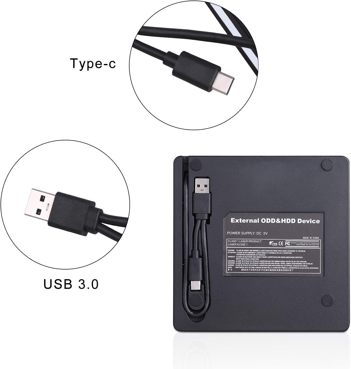 - 5Gbps Transfer: Laptop optical drive enclosure standard USB3.0/USB2.0 transfer, backward compatible with USB2.0, supports up to 5Gbps data transfer rate.