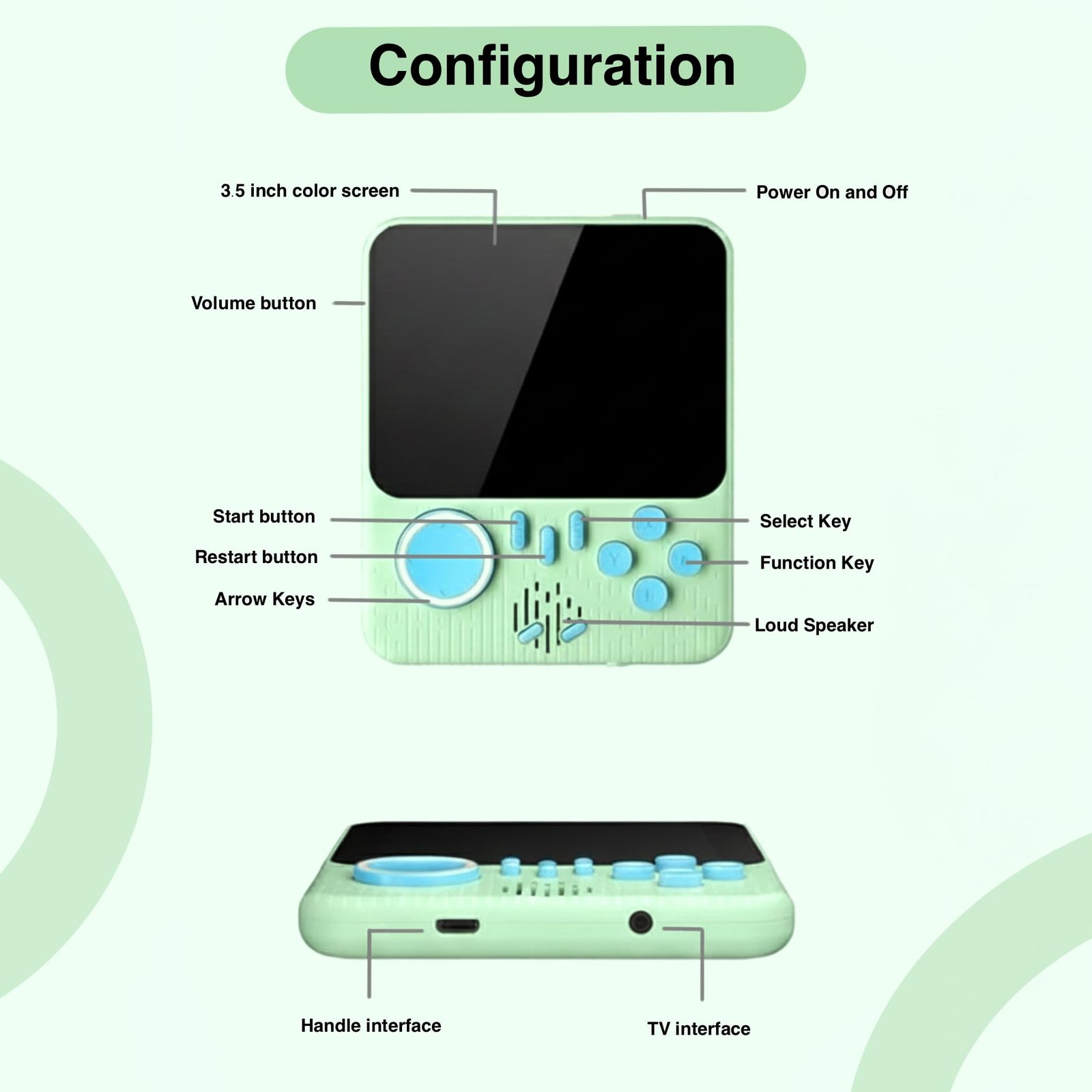 • 🕹️𝟲𝟲𝟲 𝗖𝗟𝗔𝗦𝗦𝗜𝗖 𝗕𝗨𝗜𝗟𝗧-𝗜𝗡 𝗚𝗔𝗠𝗘𝗦: The gaming console for kids features 666 built-in classic games – a huge collection of retro games for kids, offering endless entertainment and nostalgia in one compact device. Perfect video games for boys 7-14 years. These gaming console is available in Blue, Pink, Green, Grey colors, any assorted color will be delivered.
