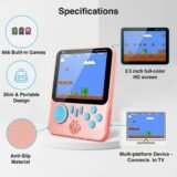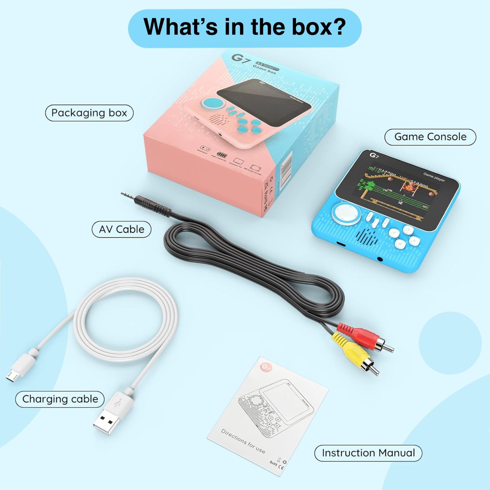 Details: Video 🎮 𝗛𝗔𝗡𝗗𝗛𝗘𝗟𝗗 𝗚𝗔𝗠𝗜𝗡𝗚 𝗖𝗢𝗡𝗦𝗢𝗟𝗘: Classic handheld gaming console featuring a vibrant display screen and traditional arcade-style controls for an authentic gaming experience. These video game console has a 3.5-inch full-color HD screen. The gaming console for kids can be connected to a TV for a larger screen experience. a huge collection of retro games for kids, offering endless entertainment and nostalgia in one compact device. Perfect video games for boys 7-14 years. These gaming console is available in Blue, Pink, Green, Grey colors, any assorted color will be delivered. 📺 𝗖𝗢𝗡𝗡𝗘𝗖𝗧𝗜𝗩𝗜𝗧𝗬: The gaming console handheld includes USB cable for convenient charging. The gaming consoles also includes AV cable, can be connected to your TV for a larger-than-life gaming experience with friends and family.