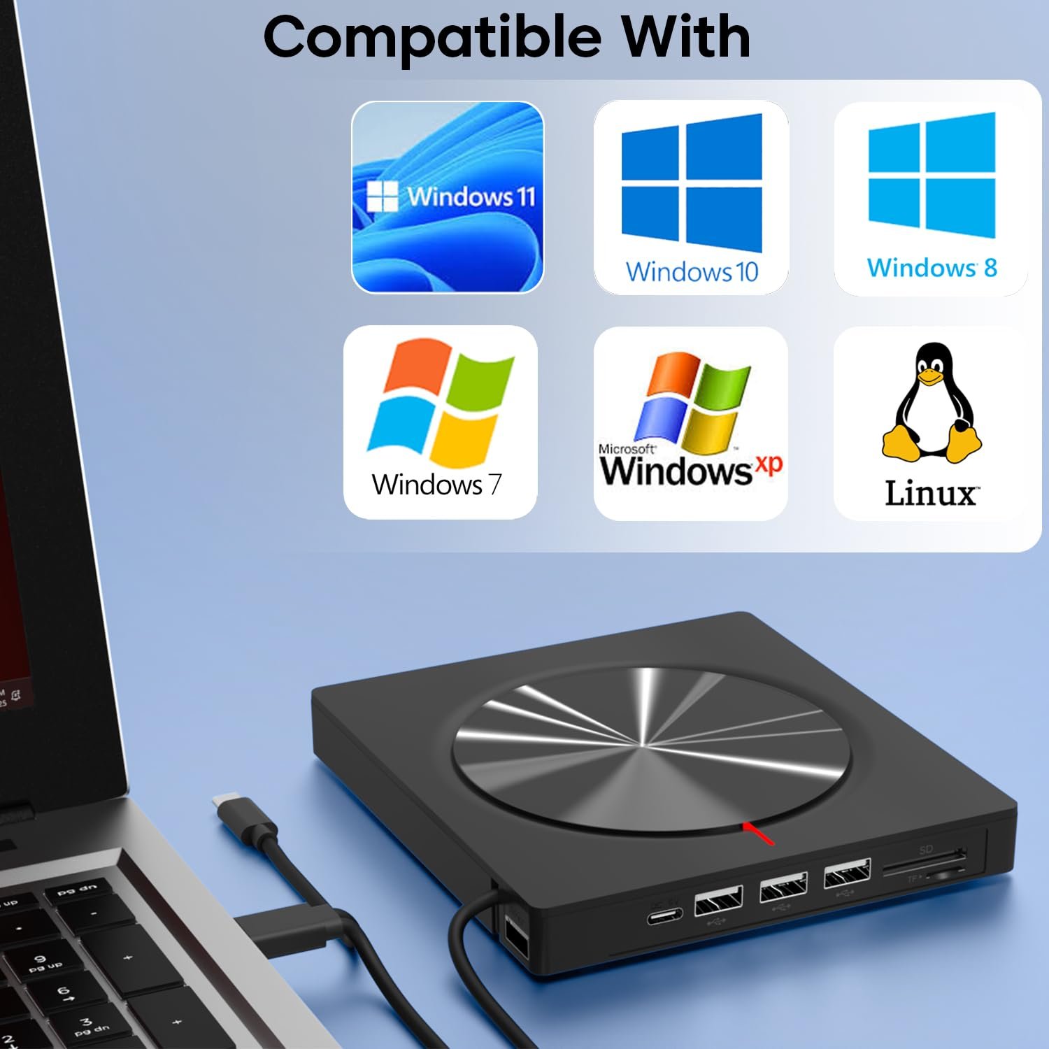 Details: Experience unparalleled versatility and performance with the Sounce Ultimate 8-in-1 External CD/DVD Drive. This isn’t just a simple optical drive; it’s a complete portable media and data transfer station designed for the modern user. Equipped with high-speed USB 3.0 and the latest USB Type C connectivity, this device ensures blazing-fast data transfer and write speeds, achieving Max 8x DVD Read/Write Speed and Max 24x CD Read/Write Speed. Simply plug it in, and you’re ready to go—no complex drivers needed thanks to the Plug and Play design. The true power of this Sounce device lies in its 8-in-1 functionality. Beyond its core capability as a CD/DVD reader and burner/writer, it significantly expands your device’s connectivity by integrating a 4-port USB 3.0 Hub, an SD Card Reader, and a TF Card Reader (note: SD and TF cards cannot be used simultaneously). This consolidation of essential ports into one sleek, lightweight unit makes it the perfect companion for modern laptops that often lack sufficient ports. Wide-ranging compatibility is a hallmark of this Sounce drive. It works seamlessly across all major operating systems, including Windows 11, 10, 8, and 7, as well as Linux and Mac OS. Whether you need to install software, watch a favorite movie, listen to classic music CDs, back up crucial data, or play legacy games, this external player is fully equipped. Its slim, lightweight design makes it incredibly portable, fitting easily into your laptop bag for use at home, in the office, or while traveling. The subtle LED Light indicator adds a touch of modern functionality, confirming the device’s operational status. Choose Sounce for a premium, reliable, and versatile external media solution.