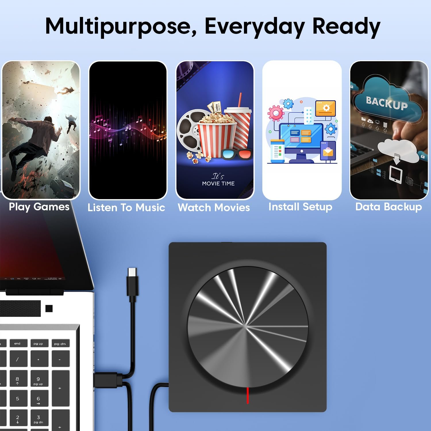 - ✅ [Portable Slim and Lightweight Design] :- Designed with mobility in mind, this external DVD player features a slim and lightweight form factor, making it the ideal travel companion for professionals and students alike. Its compact size ensures it easily slips into any laptop bag or backpack without adding significant bulk. Enjoy the convenience of watching movies, installing necessary programs, or accessing backup data anywhere—at home, at the office, or while traveling. The durable yet sleek Jet Black finish provides a professional look that complements all your modern devices.