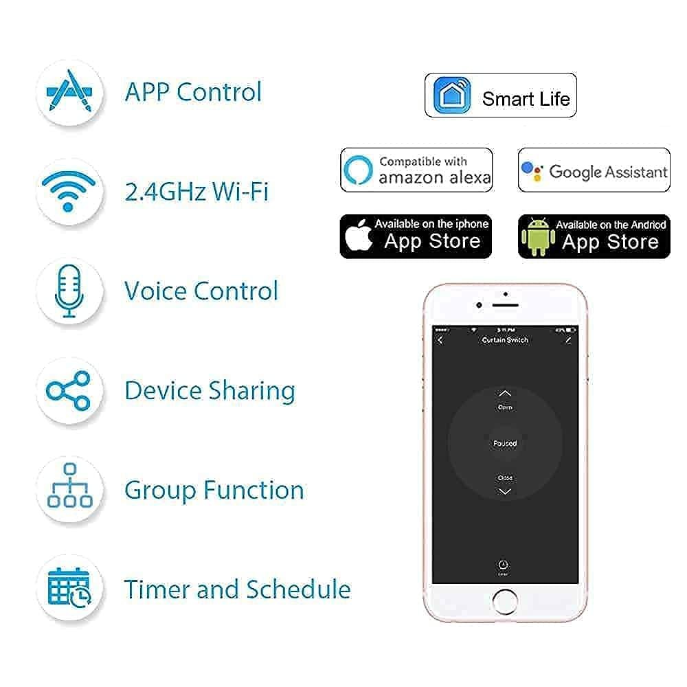 • VOICE CONTROL: Teqooz WiFi Switch is compatible with Alexa, Google Assistant, & Siri. So you can control your devices through voice and enjoy hands-free experience.