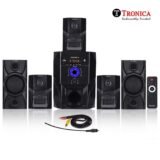 Details: This unique launch from TRONICA is distinctive from the rest.Two satellite speakers out of five are built in tower shape to provides an enhanced punch of little bass along with high decibels.When we compare it to our existing model of 5.1, We find that this modification has improved the sound parameters widely. A set of 5 satellite speakers and 4″ sub woofer enables you to experience theatrical effect.Supports Pendrive/SD card/FM/AUX/mobile/Bluetooth. The speaker has in-built FM with preset channels and also automatic/manual tuning for you to enjoy music.