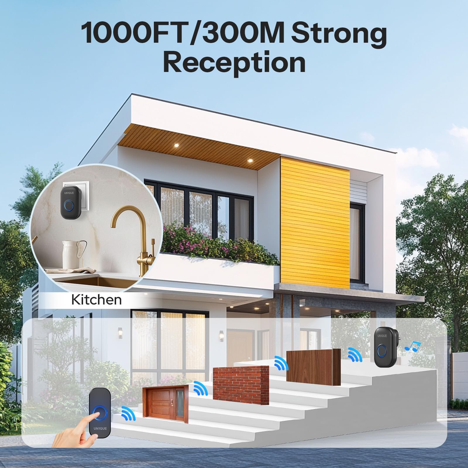 • [ Ultra Long Operating Range ] The doorbell has an impressive operating range of 300m / 1000ft in open areas, making it suitable for use in any corner of your space. You can install it anywhere without worrying about the range being an issue