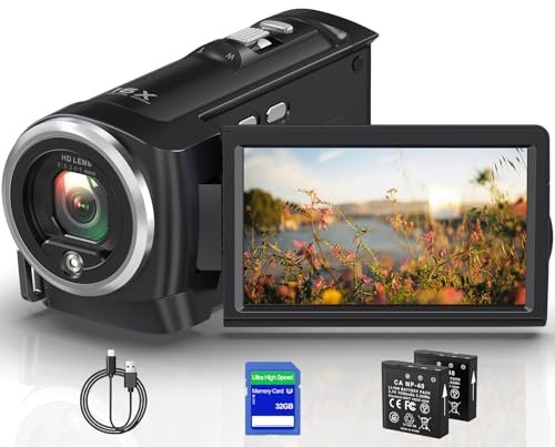 - 【Multifunctional Camcorder】This versatile video camera features an LCD screen with 270° rotation, anti-shake, face detection, self-timer, continuous shooting, image stabilization, multiple scene modes, webcam functionality, USB 2.0, and more. Lightweight and portable, the camcorder is perfect for capturing beautiful moments anytime, anywhere, making it an excellent gift for family and friends.