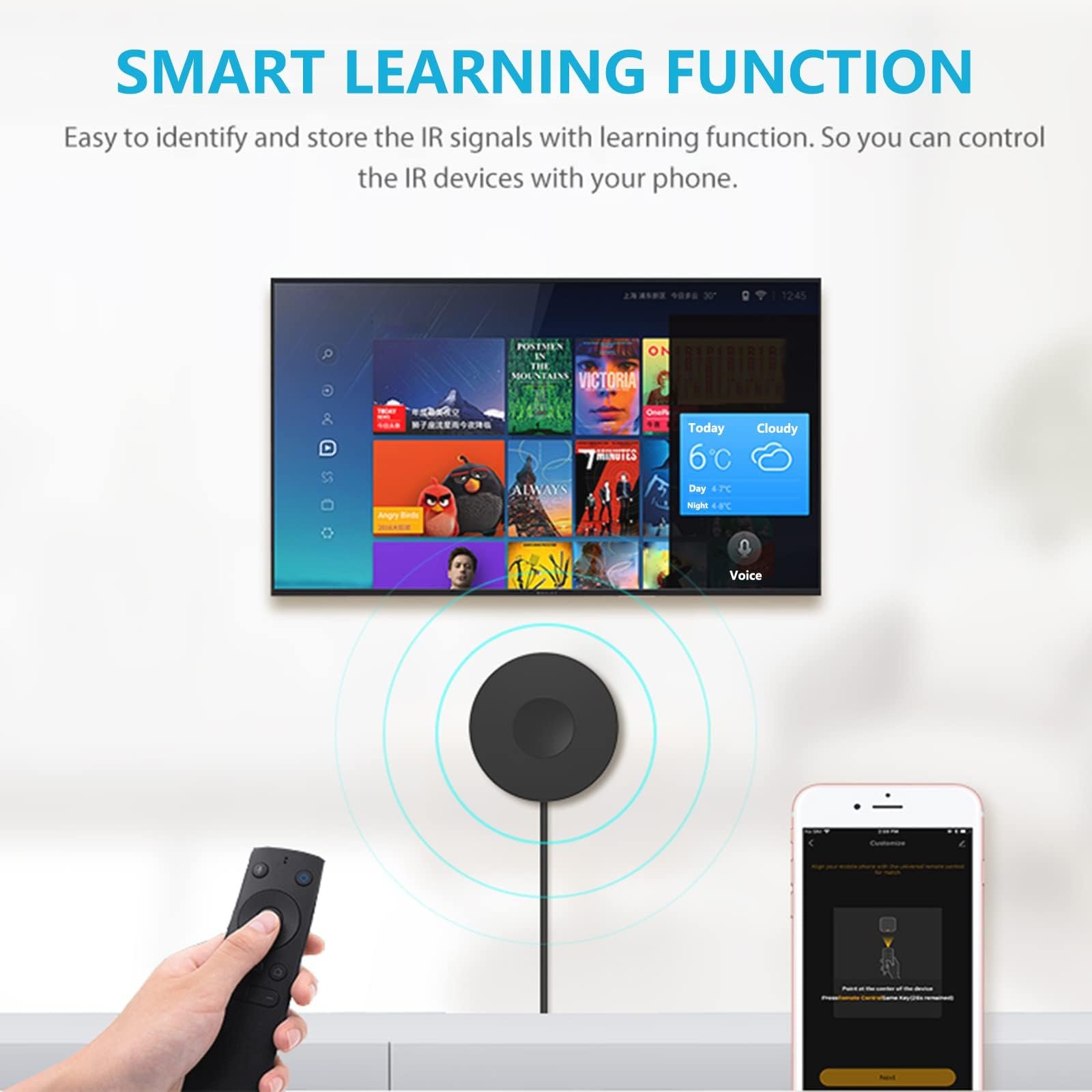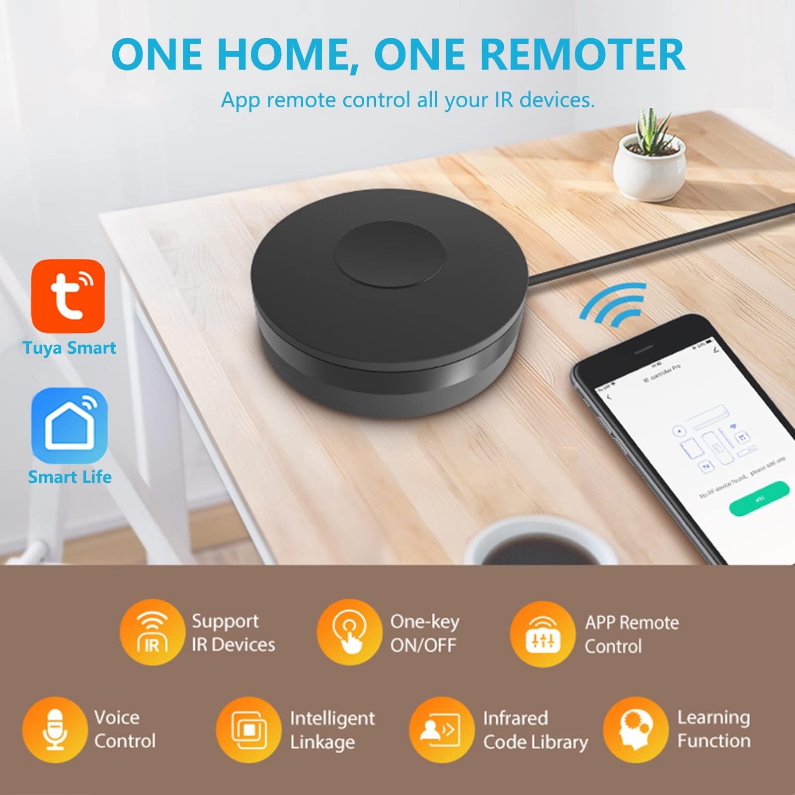 • 【Smart remote 】: You can control all household appliances by hand to any extent via Tuya APP/Smart Life APP, your phone will be a smart remote, and you can remotely control your IR devices no matter if you are at home or away.