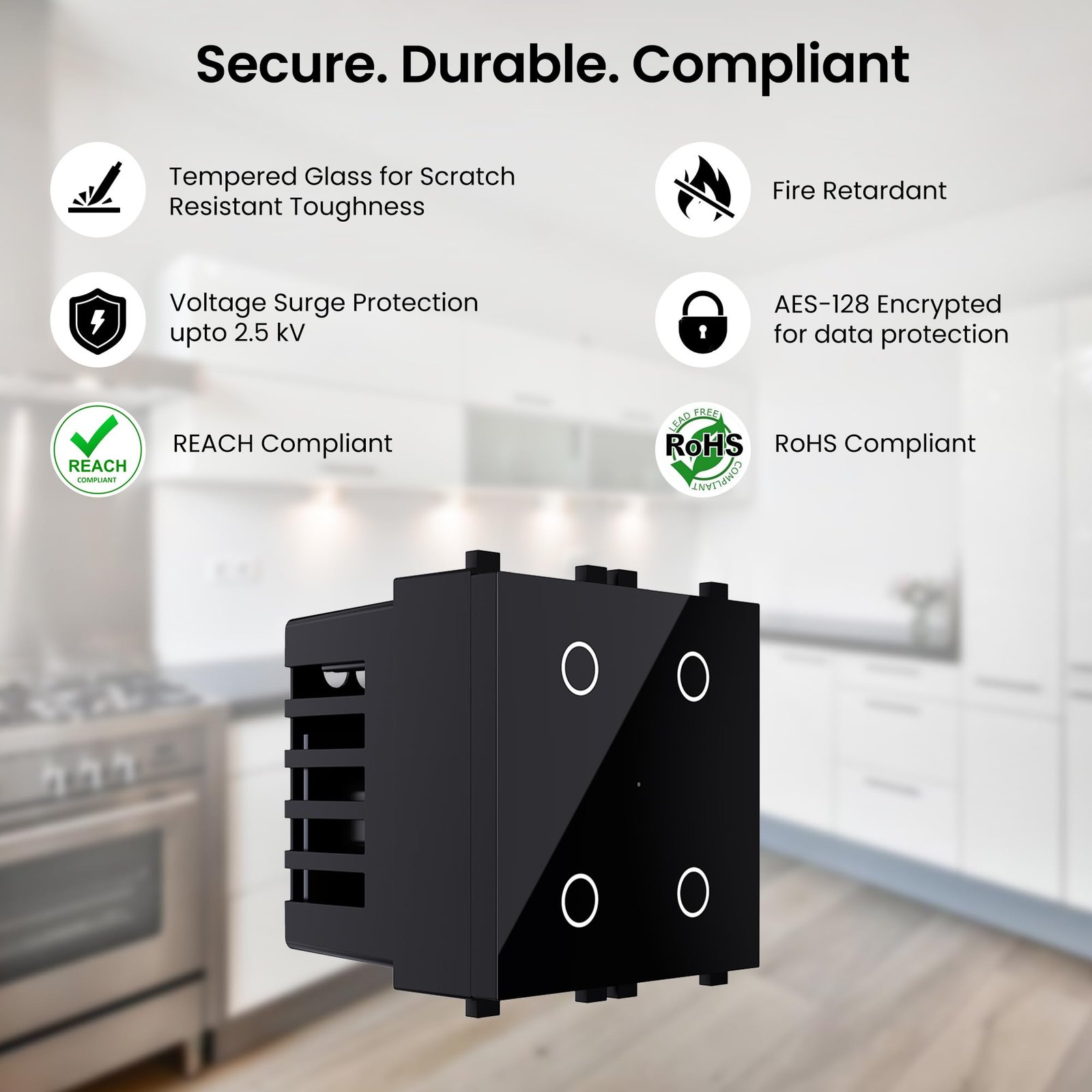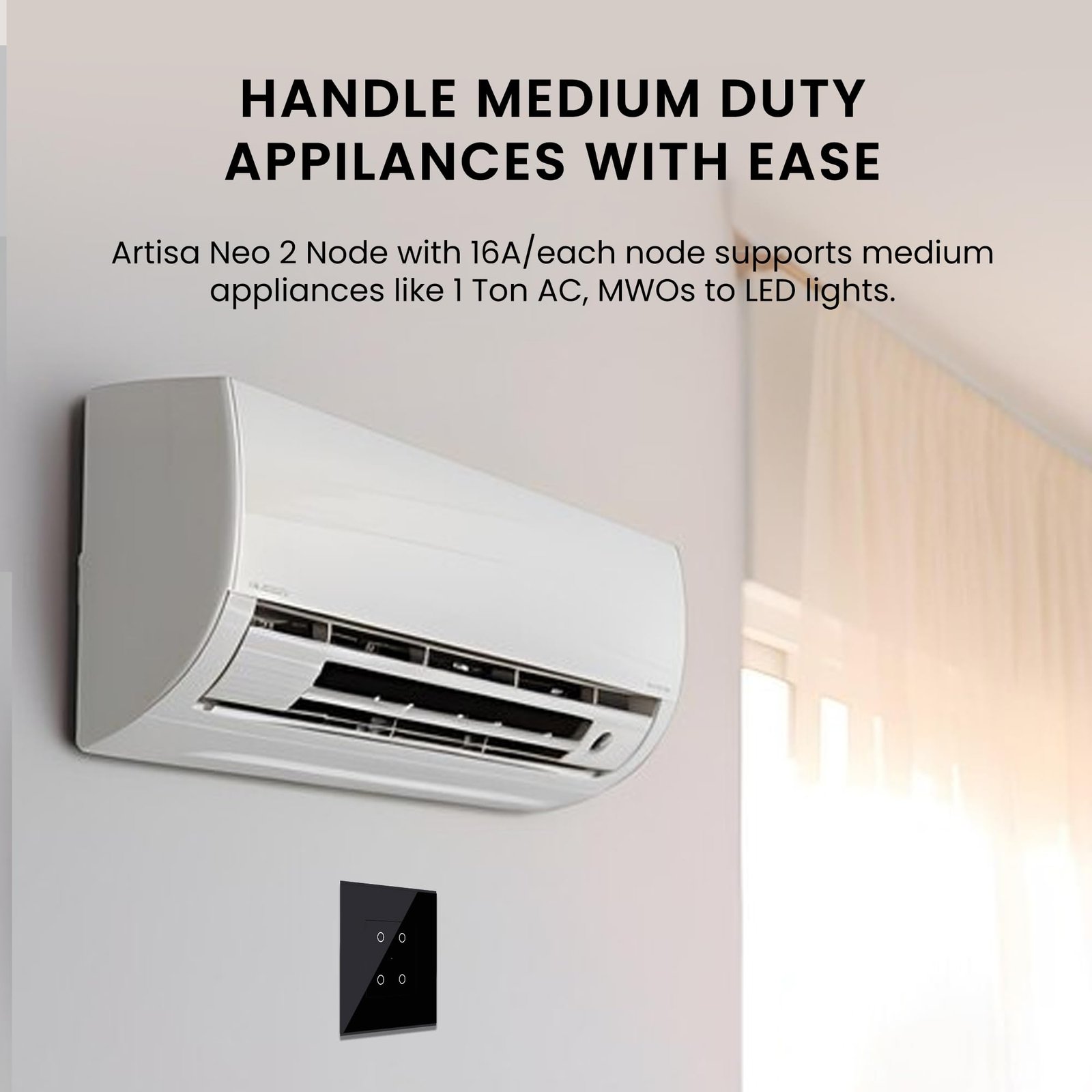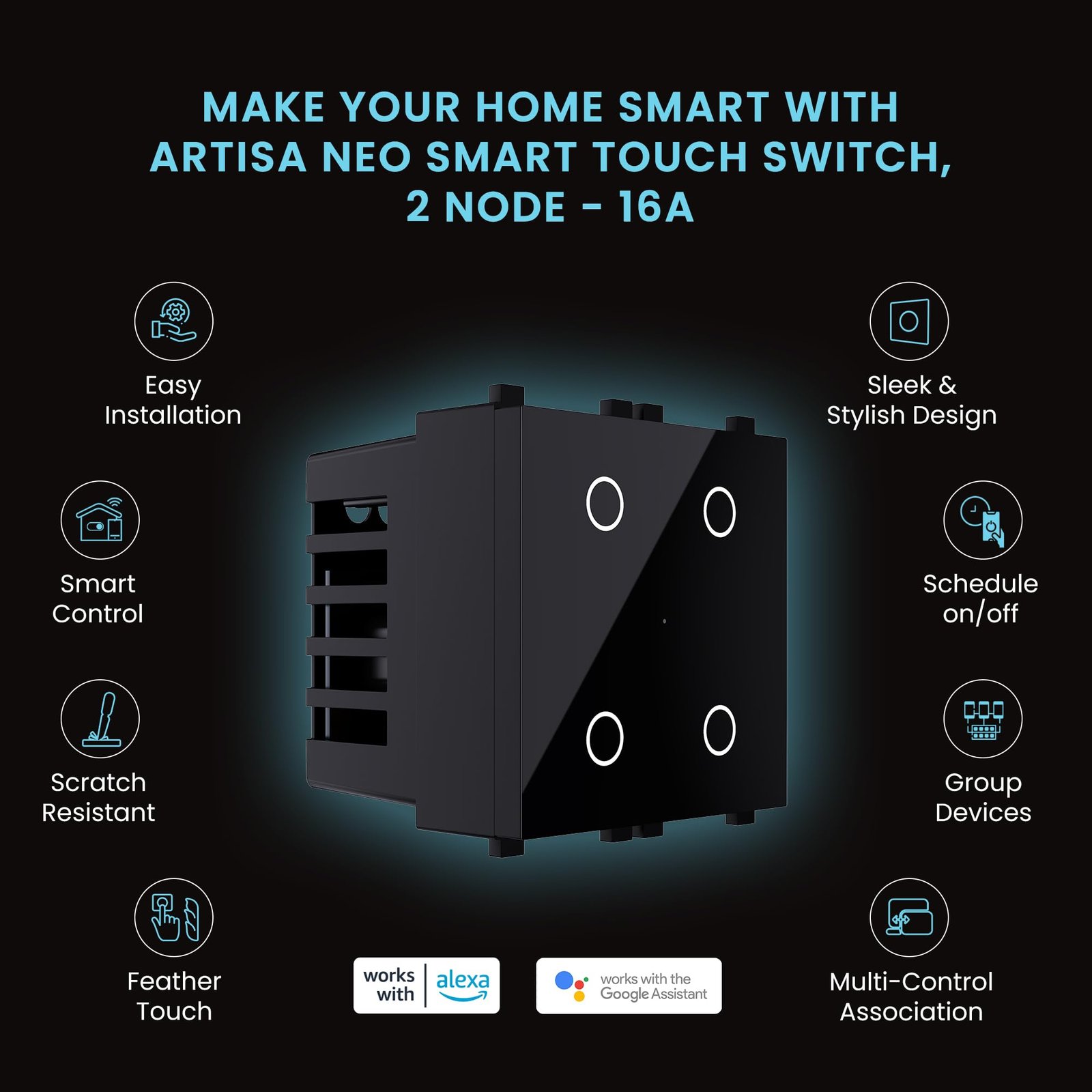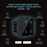 - Applications: The Artisa Neo 4 Node Smart Touch Switch has 4 switches each of 6A which are compatible with regular devices like LED lights etc.